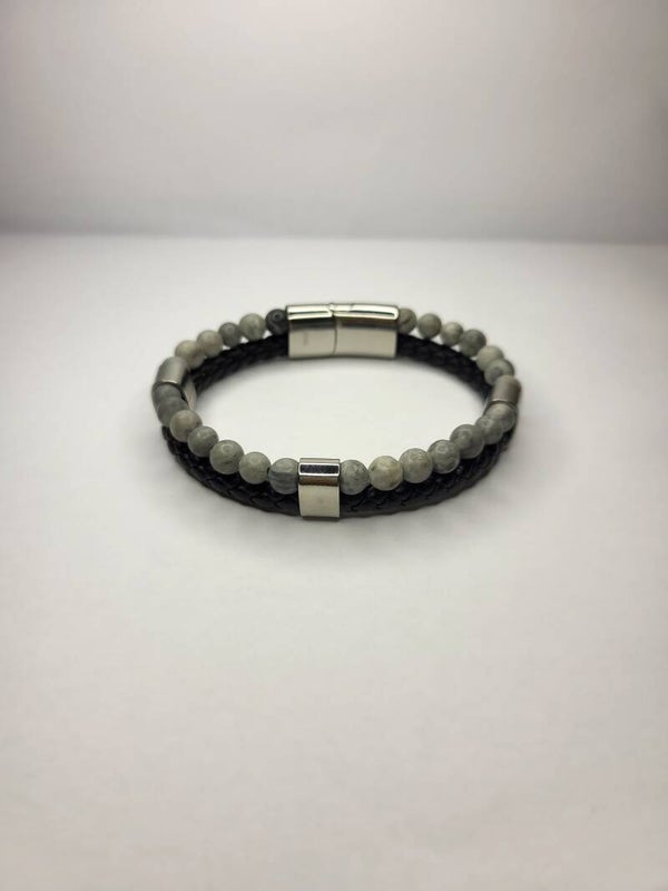 Deze prachtige armband is gemaakt van stainless steel, PU en steen en heeft een klik sluiting. De armband heeft een afmeting van 21,5 cm.