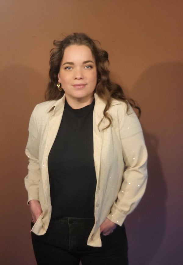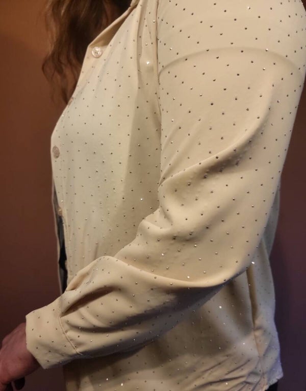 Een super mooie blouse om te dragen met de feestdagen die eraan komen. De mooie glittertjes die erop zitten maken de blouse helemaal af.
